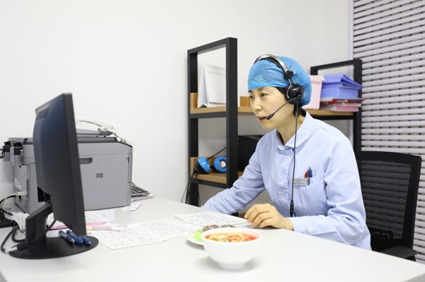 王磊副主任(左一)正在與產(chǎn)婦溝通整體康復(fù)治療計(jì)劃