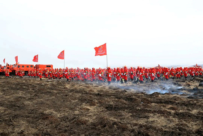 上午11時(shí)許,演練指令正式下達(dá),信號(hào)彈騰空而起,一場(chǎng)以管護(hù)區(qū)內(nèi)某重點(diǎn)林區(qū)發(fā)生火災(zāi)為演練背景的撲火戰(zhàn)斗全面打響。隨著一道道命令的下達(dá),各參演單位指戰(zhàn)員迅速行動(dòng),按照林火監(jiān)測(cè)和火情報(bào)告、接警處置和啟動(dòng)預(yù)案、組織兵力投送、組織指揮滅火行動(dòng)等工作流程,有序組織開展演練。演練中,撲火隊(duì)伍結(jié)合火場(chǎng)態(tài)勢(shì),科學(xué)選用兩翼對(duì)進(jìn)、鉗形夾擊,多點(diǎn)突破、分段圍殲等戰(zhàn)法,重點(diǎn)演練了無人機(jī)滅火、直升機(jī)空中作業(yè)、常規(guī)滅火、大型裝備滅火等內(nèi)容。來自市森林消防支隊(duì)、應(yīng)急航空救援伊春站、市應(yīng)急救援支隊(duì)、市消防救援支隊(duì),烏伊嶺、湯旺河、新青、紅星、五營(yíng)、上甘嶺、友好、翠巒、美溪林業(yè)局公司撲滅火大隊(duì),新青林業(yè)局公司紅林、湯林林場(chǎng)分公司快速撲滅火小隊(duì)和民兵預(yù)備隊(duì)等單位,共計(jì)800余人參加演練。