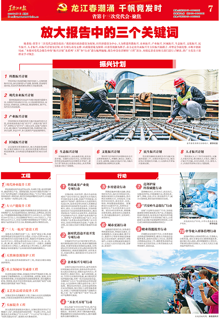 編者按:省第十三次黨代會(huì)報(bào)告提出:“我們要以政治建設(shè)為統(tǒng)領(lǐng),以經(jīng)濟(jì)建設(shè)為中心,大力推進(jìn)科教振興、農(nóng)業(yè)振興、產(chǎn)業(yè)振興、區(qū)域振興、生態(tài)振興、文化振興、民生振興、人才振興,以振興計(jì)劃為引領(lǐng)、以專項(xiàng)行動(dòng)為支撐、以政策措施為保障、以落實(shí)機(jī)制為抓手,奮力走出全面振興全方位振興新路子,重塑競(jìng)爭(zhēng)新優(yōu)勢(shì)、不斷開(kāi)創(chuàng)新局面?!北緢?bào)對(duì)黨代會(huì)報(bào)告中的“振興計(jì)劃”及系列“工程”和“行動(dòng)”進(jìn)行梳理摘編,報(bào)告中沒(méi)有詳解的“工程”部分,本報(bào)記者采訪相關(guān)部門進(jìn)行了解讀,供廣大黨員干部群眾學(xué)習(xí)領(lǐng)會(huì)。