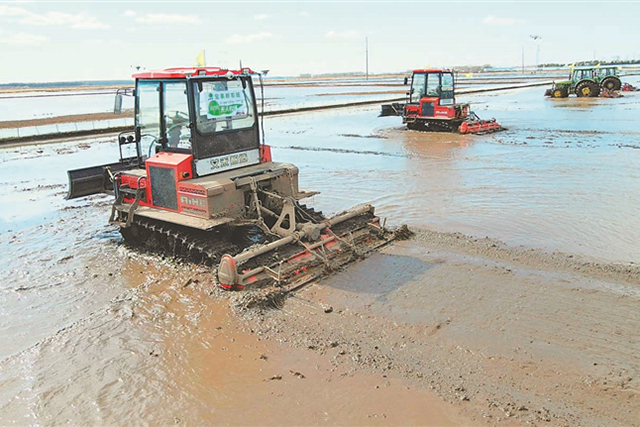 無人農(nóng)機(jī)在水田整地作業(yè)。 馬文竹 王帥攝