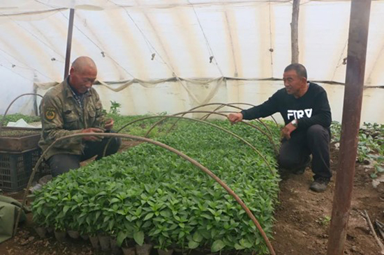 前些天刮大風(fēng),崔爾成家用來(lái)固定大棚膜的“地矛子”有幾條折了,大棚膜被掀開(kāi)一角,他想讓常山幫他重新捆綁固定。