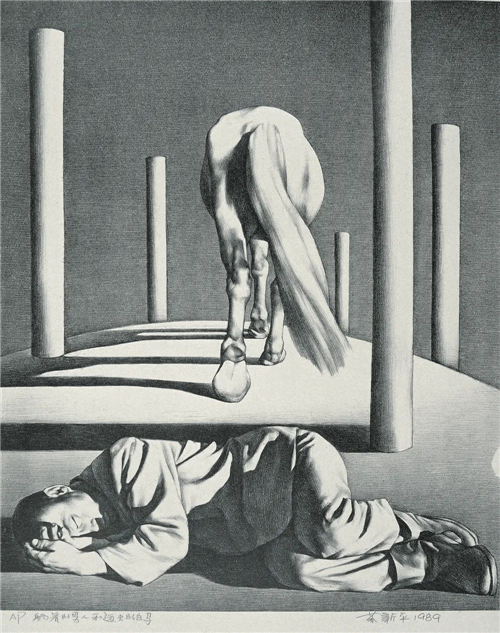 躺著的男人與遠去的白馬 62×50.5cm 石版畫 1989年
