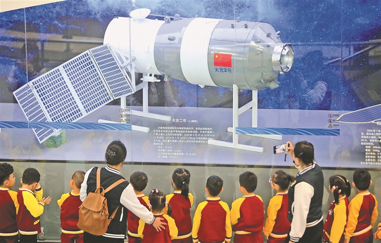 4月24日是第九個“中國航天日”。哈爾濱工業(yè)大學航天館里,前來參觀的群眾絡繹不絕。哈工大附中的幾十位同學興致勃勃地參觀了室外航天主題文化園,在長征一號運載火箭、東風二號地對地彈道導彈、資源號返回艙等大型實物展品前長久駐足觀看。在航天館內(nèi),他們還認真聆聽了多位教授的航天知識講座,不斷為精彩的內(nèi)容鼓掌。