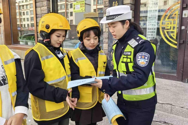 活動中,民警先后走進轄區(qū)外賣企業(yè)及物流運輸企業(yè),結(jié)合轄區(qū)交通管理工作實際,緊緊圍繞當前廣大交通參與者的出行特點,通過發(fā)放宣傳資料、粘貼海報及以案釋法等方式,向企業(yè)負責人及駕駛?cè)嗽敿氈v解雨雪天氣出行交通安全知識及酒駕醉駕、無牌無證、超員超載、不佩戴安全頭盔、不系安全帶等違法行為的嚴重危害和后果,同時現(xiàn)場警示交通參與者:“摒棄僥幸心理,從細節(jié)養(yǎng)成良好駕駛習慣,緊繃交通安全弦,時刻守住出行安全防線?!?/span>